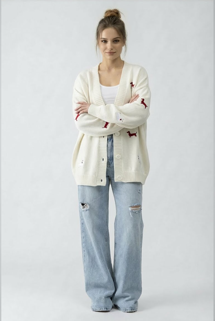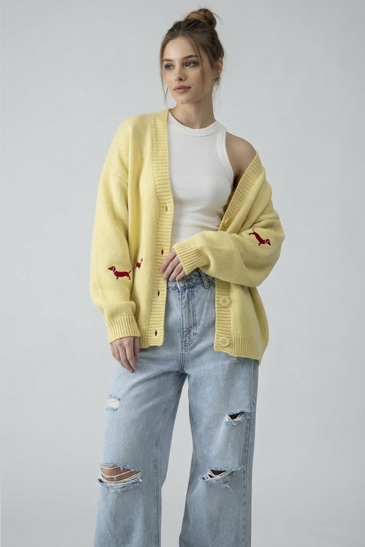 Highlight sind die kleinen, roten Stickdetails ein subtiler Eyecatcher, der den Cardigan einzigartig macht. Perfekt für Frühling, Herbst und kühle Sommerabende.