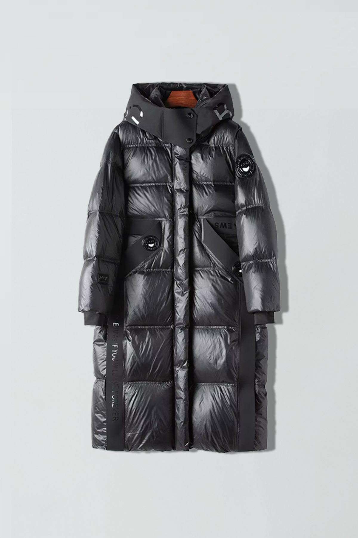 Erleben Sie Stil und Komfort in Perfektion mit unserer langen Steppjacke mit Kapuze. Diese elegante, glänzende Jacke bietet durch ihre verlängerte Passform nicht nur optimalen Schutz vor Kälte und Wind, sondern verleiht Ihnen auch einen modernen und luxuriösen Look. Mit Details wie den markanten Schriftzügen, hochwertigen Reißverschlüssen und einer abnehmbaren Kapuze ist sie der perfekte Begleiter für kalte Tage. Die dicke Wattierung sorgt für angenehme Wärme, während das zeitlose Design Ihre Garderobe aufwertet.