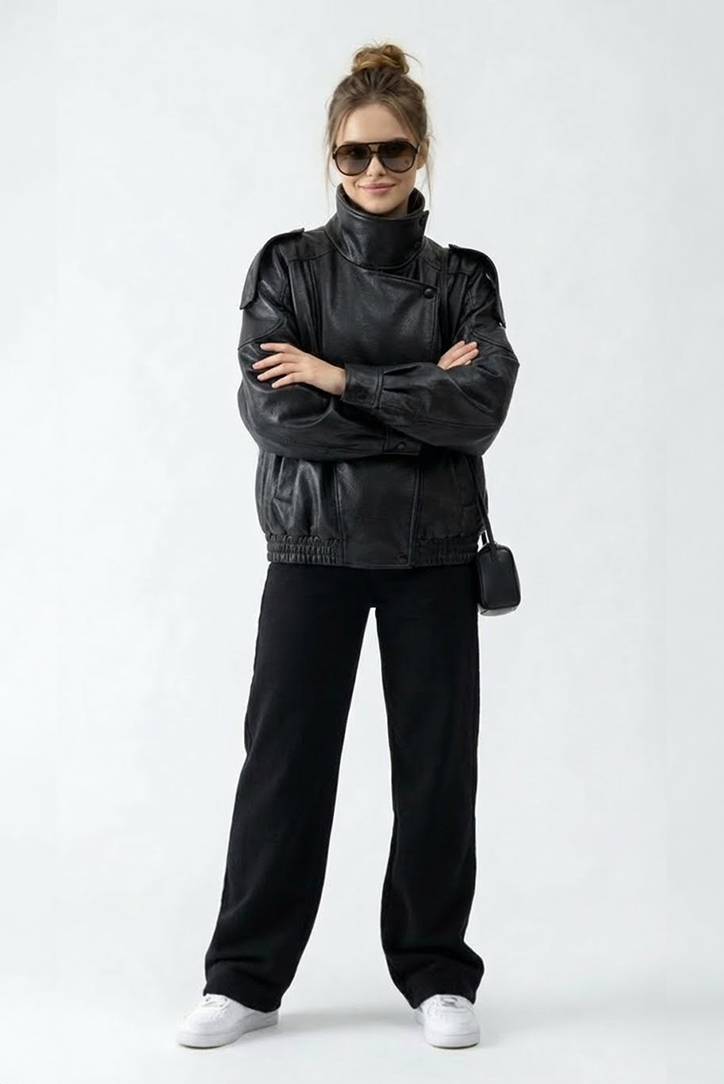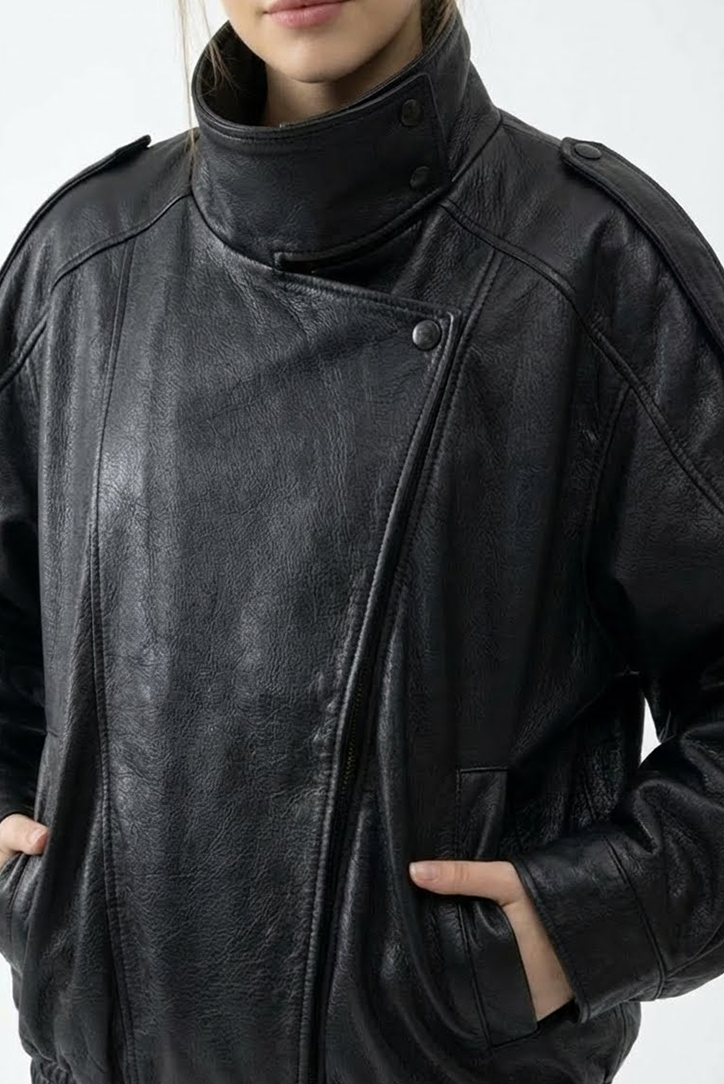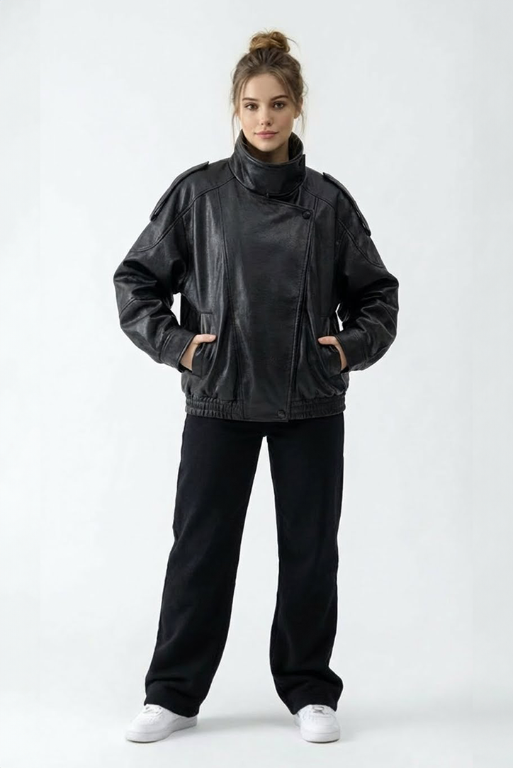 Die perfekte Mischung aus Streetstyle und Komfort. Diese oversized PU-Jacke hat einen lässigen, leicht boxy Fit und fühlt sich dank des soften Kunstleders super bequem an. Die hohe, asymmetrische Kragenform gibt der Jacke einen coolen, modernen Look – perfekt für jeden Tag.