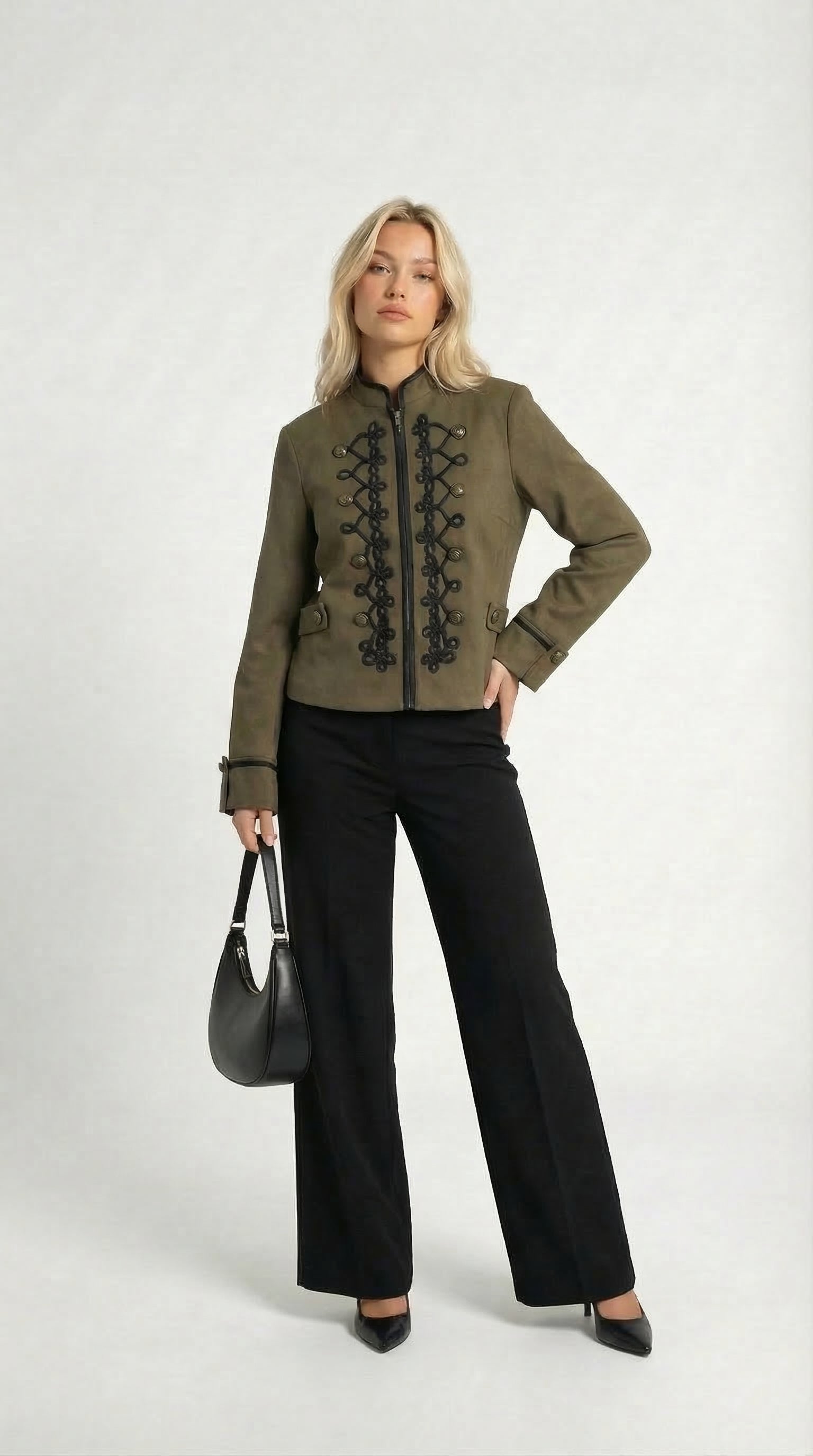 Die dekorativen Details auf der Vorderseite verleihen der Jacke ihren besonderen Napoleon-inspirierten Look und machen sie zu einem echten Eyecatcher. Perfekt für Dinner, Events, besondere Tage oder einfach dann, wenn dein Outfit mehr Ausstrahlung haben soll.
