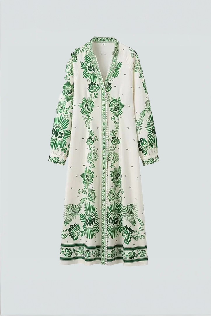 Locker, leicht und absolut urlaubstauglich – dieses Maxikleid bringt Sommerfeeling pur! Der luftige Schnitt mit V-Ausschnitt und halblangen Ballonärmeln sorgt für maximale Bewegungsfreiheit und ein angenehmes Tragegefühl. Das florale Allover-Print in sattem Grün wirkt edel und zugleich entspannt. Perfekt für Strandspaziergänge, Citytrips oder den Wochenmarkt um die Ecke. Mit Taillengürtel für eine feminine Silhouette.
