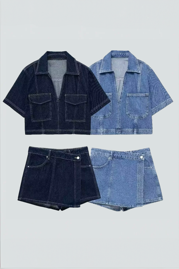 Dieses sommerliche Set bringt alles mit, was du für einen coolen und lässigen Look brauchst. Die kurzärmelige Bluse mit V-Ausschnitt, Oversize-Schnitt und Brusttaschen sorgt für ein entspanntes Tragegefühl und liegt voll im Trend. Kombiniert wird sie mit einem passenden Rock im asymmetrischen Schnitt mit hohem Bund – super schmeichelhaft und easy zu kombinieren. Ob Citytrip, Festival oder Casual Day – dieses Set ist ein echter Hingucker.