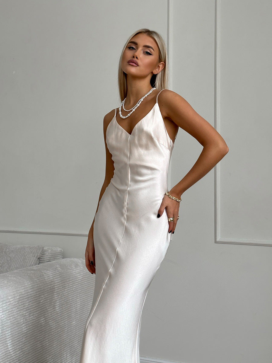 Dieses figurbetonte Satinkleid mit zarten Spaghettiträgern ist die perfekte Wahl für elegante Abendveranstaltungen oder besondere Anlässe. Das luxuriöse Material aus 95% Viskose und 5% Elasthan sorgt für eine schmeichelhafte Passform und ein angenehmes Tragegefühl. Der lange, fließende Schnitt verleiht eine edle Silhouette, während der tiefe V-Ausschnitt das Dekolleté elegant betont.