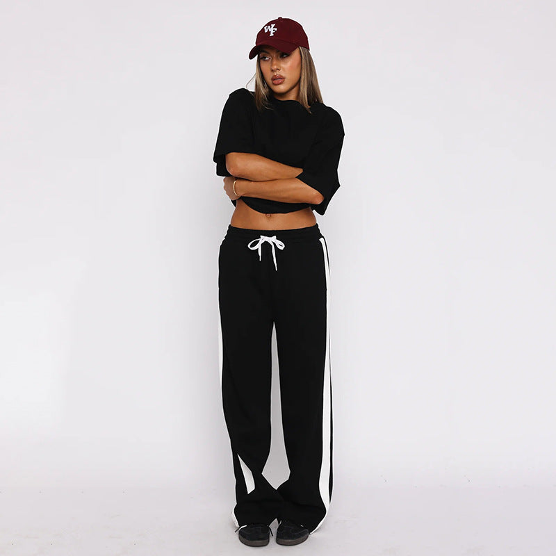 Diese lässige Jogginghose kombiniert Style und Komfort perfekt. Mit einem elastischen Bund und einem auffälligen weißen Streifen an der Seite ist sie ideal für entspannte Tage oder sportliche Outfits. Das schlichte Design macht sie vielseitig kombinierbar – egal ob für zu Hause, den Sport oder unterwegs. Erhältlich in den Größen S, M und L.