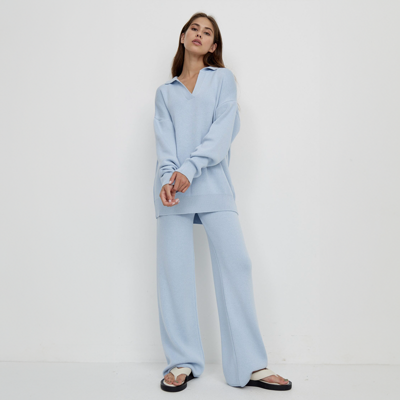 Dieses oversized Knit-Set aus 50% Viskose, 30% Polyester und 20% Nylon bietet maximalen Komfort und Style. Der lässige Pullover mit elegantem Kragen kombiniert sich perfekt mit den weiten Hosen für einen entspannten und dennoch stilvollen Look. Ideal für einen casual Tag oder für elegante Freizeitaktivitäten. Erhältlich in den Farben Creme, Schwarz, Kaki, Grau-Blau und Hellgrau sowie in den Größen S, M und L.