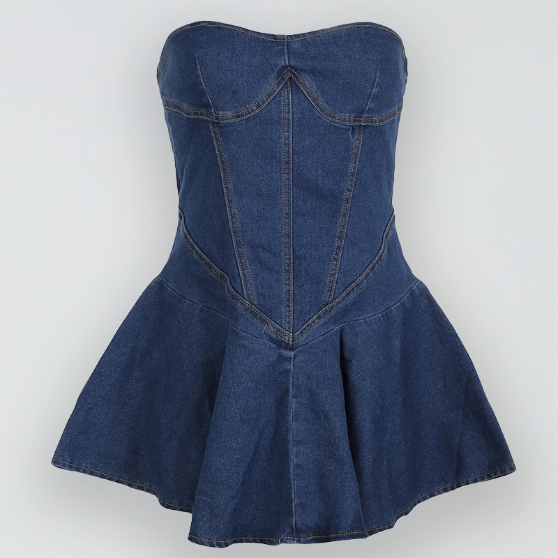Dieses schulterfreie Denim-Kleid ist ein absoluter Hingucker! Mit seinem figurschmeichelnden Korsett-Design und einem fließenden Volantrock ist es die perfekte Wahl für besondere Anlässe oder mutige Streetstyle-Looks. Der verwaschene Denim-Stoff sorgt für einen lässigen Vintage-Look, während die trägerlose Passform deine Silhouette perfekt betont. Kombiniere es mit High Heels oder auffälligem Schmuck für einen unvergesslichen Auftritt. Erhältlich in den Größen S, M, L und XL.